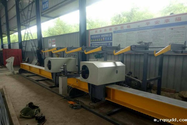 将需要加工的钢筋吊至链床上,选择安装好配套模具;在“生产画面”中设好钢筋长度,计划生产根数,根据钢筋直径的不同,选择每次生产钢筋的根数匠蘂精,调整好左右机头的长度和角度补偿值。